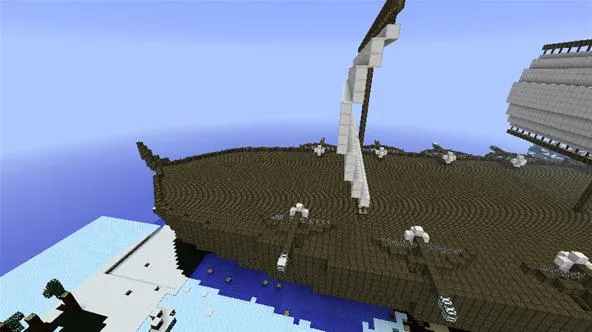 Moderator Andrew has constructed an epic sailing vessel. Okay, it doesn't actually sail, but it is epic in scale. This ship is so large it disappears in the render fog. Made from lots of wood, wool, and a few missed matches blocks, this is a great example of unique Minecraft architecture. Not only is it fit to hold hundreds of players, his ship is equipped with several giant bows ready to tear apart it's enemies. Unfortunately, the sailing and fighting will have to remain in our imaginations for the time being.